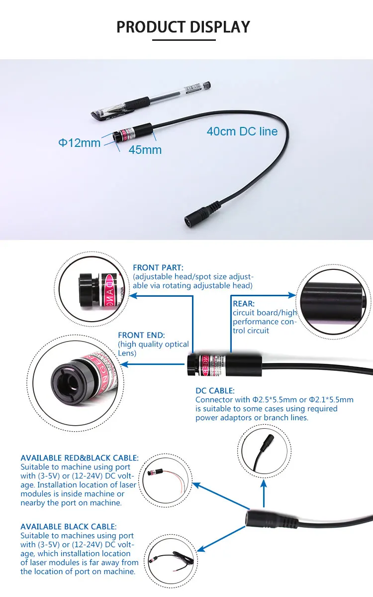 | OPTICAL PART: | LINE WAVE LENS; | Output power: | 0.1~5MW (CUSTOMIZED); |