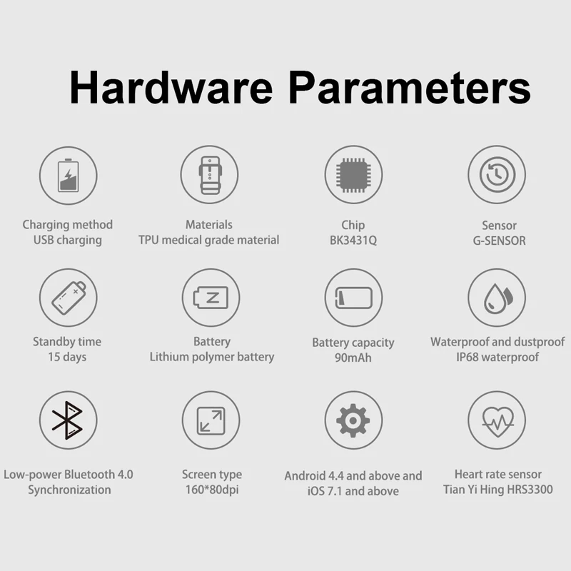 | Sensor: | G-SENSOR; | Band Material: | TPU; |