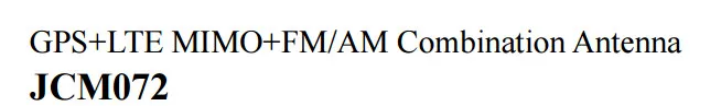 | LTE Antenna Center Frequency: | 698~960/MHz/1710~2690MHz; | Model Number: | JCM072; |