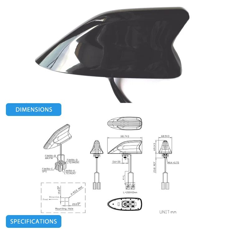 | GPS Antenna Center Frequency: | 1575.42±3MHz; | Frequence Range: | GPS+LTE MIMO+FM/AM; |