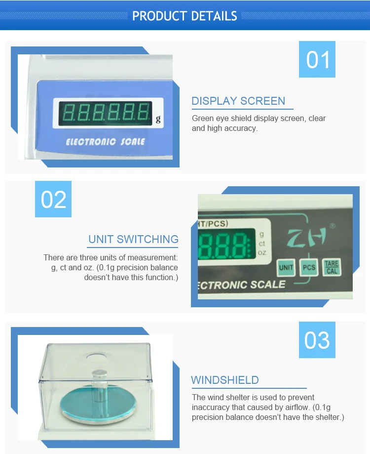 3. The wind shelter is used to prevent inaccuracy that caused by airflow. (0.1g precision balance doesn’t have the shelter.)