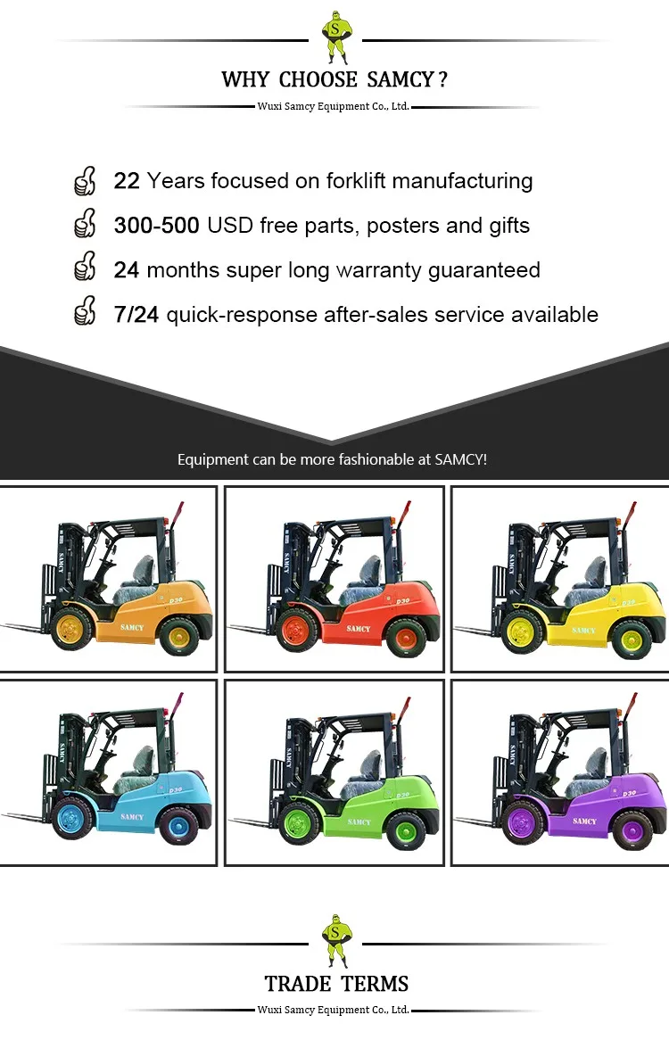 | Packaging Detail: | Product Name: SAMCY Best Selling Japanese Engine 3 Ton Diesel Forklift Packing: Nude cargo Loading: 2 sets 20 feet container; | Payment Terms: | L/C,D/A,D/P,T/T,Western Union,MoneyGram; |