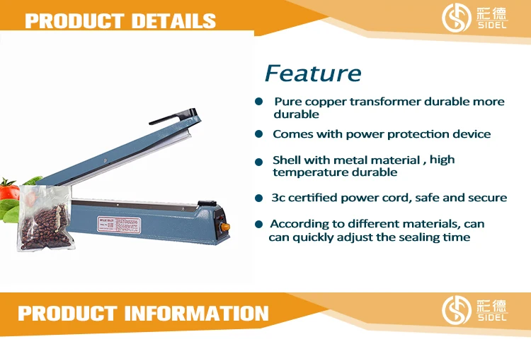 1. The SF series hand sealing machine is easy to be operated and suitable to seal various kinds of plastic films, with the heating time adjustable.