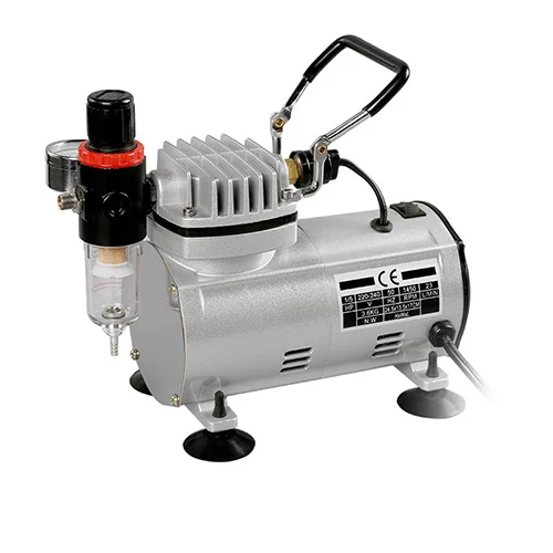 | Feature | 1.Hermally protected; 2.Under 50db noise; 3.auto stop,auto start; 4.ressure-adjustable; 5.suit for 0.2mm-1.0mm airbrush |