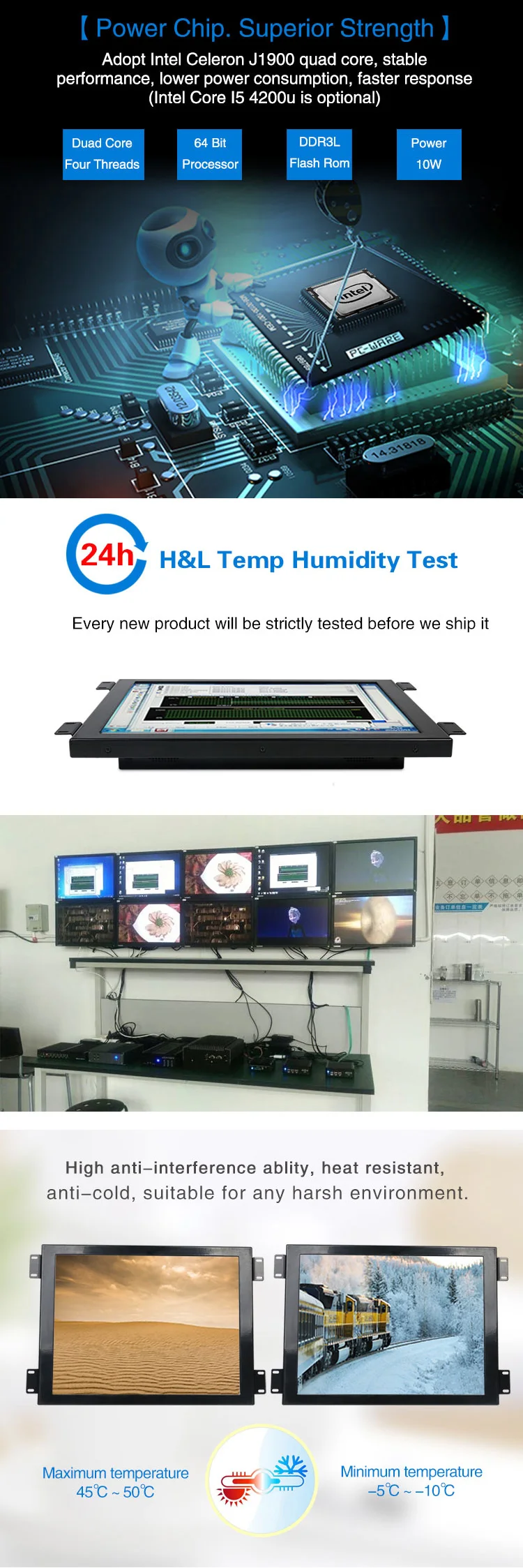 1) Intel Celeron J1900 quad core 2.0GHz(core i5 4200U is optional)