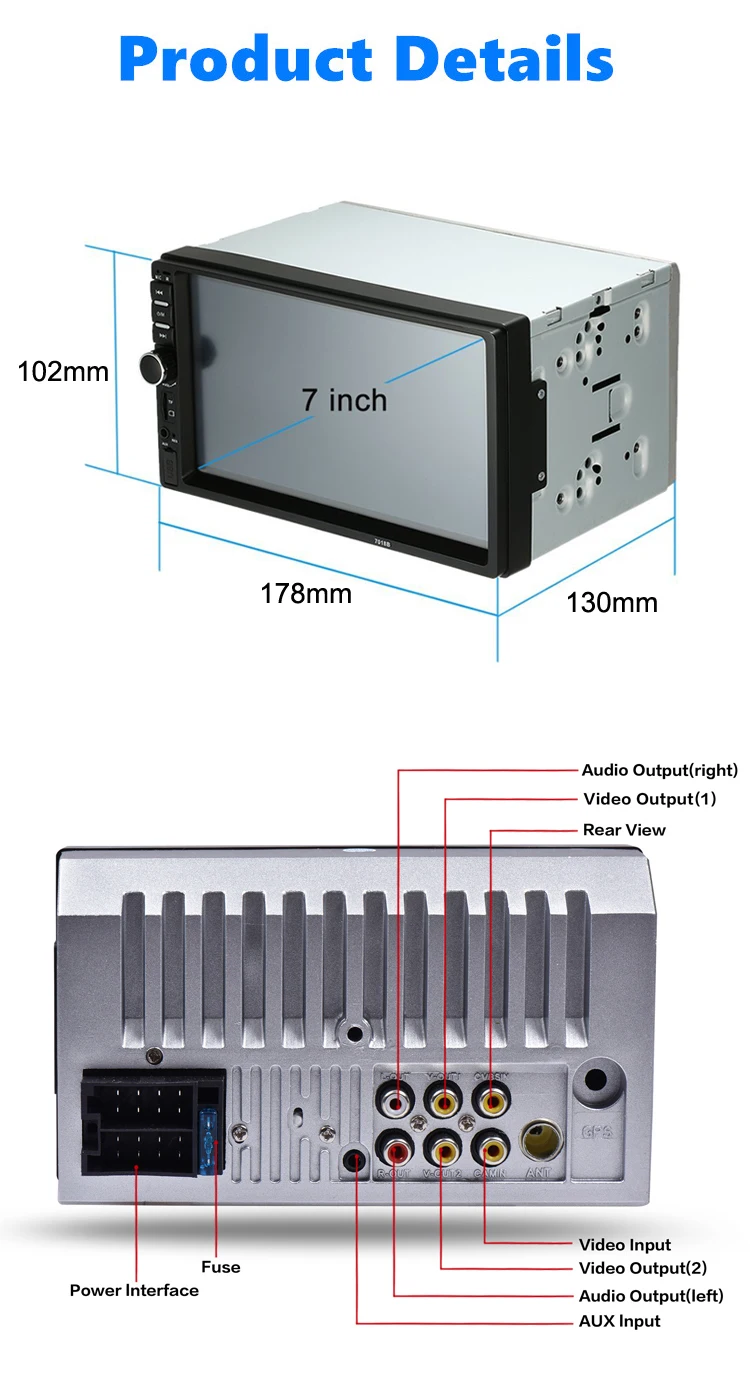 | Car Make: | Universal; | Screen: | 7 inch tft lcd; |