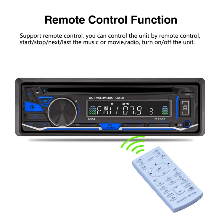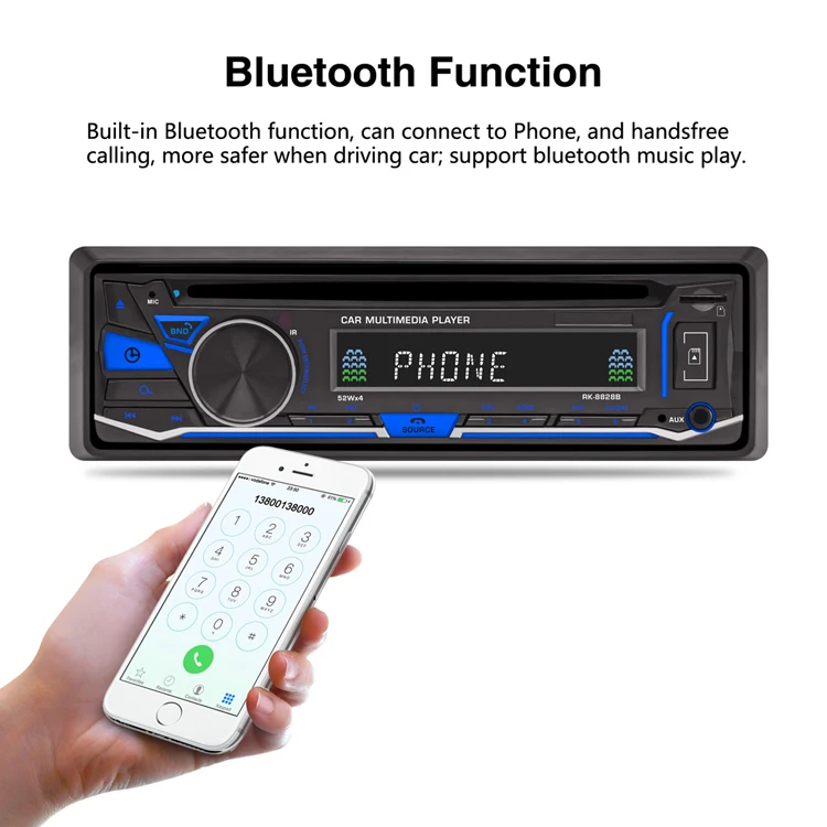 Model: | RK-8828B BLUETOOTH CAR DVD/DIVX/MP4/AM/RDS/FM/AUX PLAYER |