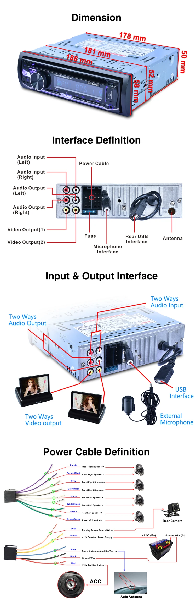 | Application: | Radio CD music; | Voltage: | 12V; |