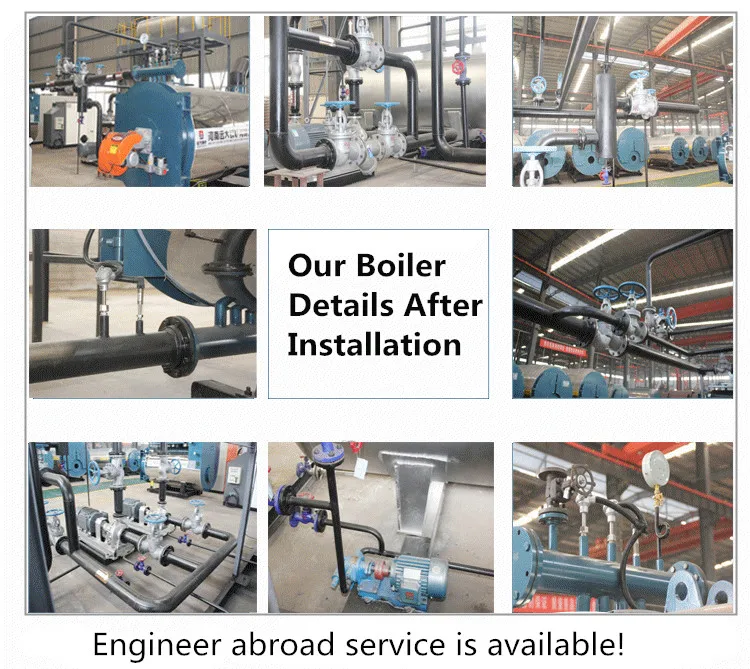 A: After you receive the boiler, we will guide you to make some preparation for installation; If necessary, our expert will fly to your local place in 72 hours. The experts will responsible for guiding installation,training, trial operation.