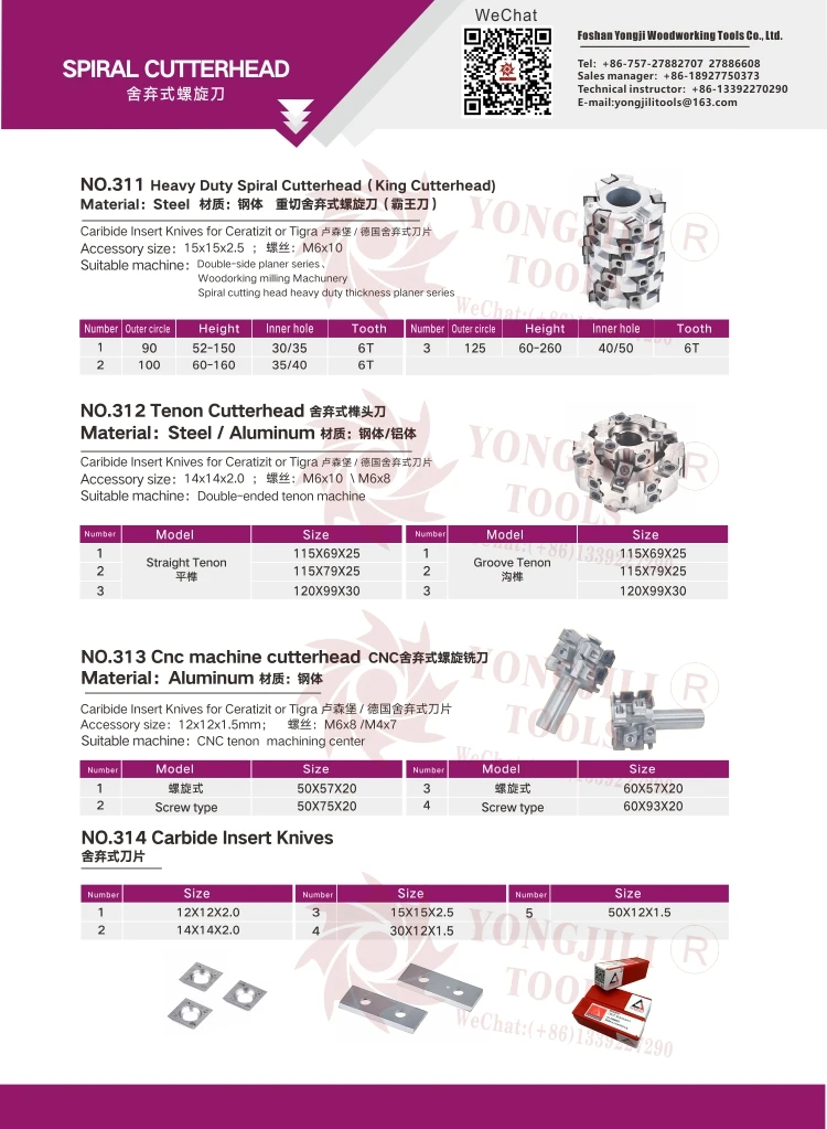 Factory Price 313# CNC Machine Reversible Spiral Cutterhead Woodworking Tools Cutter